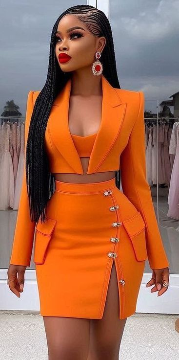 Sexy Orange 🧡 crepe jacket with  fancy skirt.